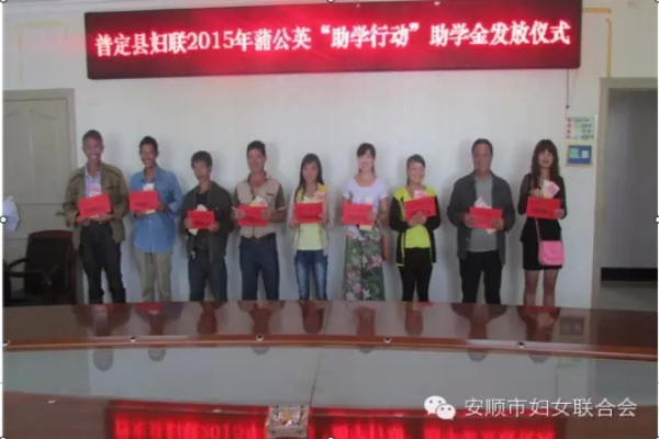 9月6日下午,普县妇联在县委五楼会议室举行2015年蒲公英“助学行动”助学金发放仪式,向该县10余名现年应届高中毕业考入二本以上成绩优异的家境贫困大学新生(家庭)各发放5000元助学金。